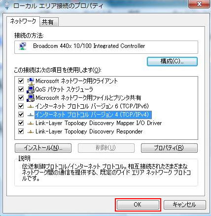 「インターネット プロトコル バージョン 4(TCP/IPv4)」を