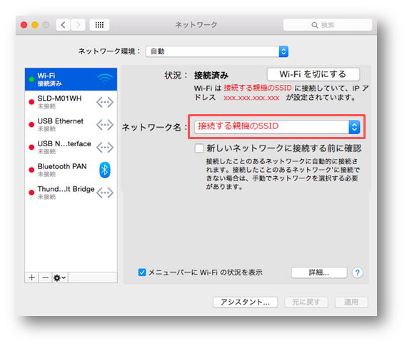 ステップ 18/19 : 再起動が完了しましたら、MacのWi-Fiを 接続する親機のSSIDに無線接続します。