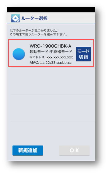 【ルーター選択】に設定した本製品が表示されていれば設定は完了となります。