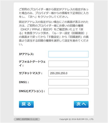 Q.固定IP設定の画面が表示された/何を入力してよいかわからない【-Sシリーズ】