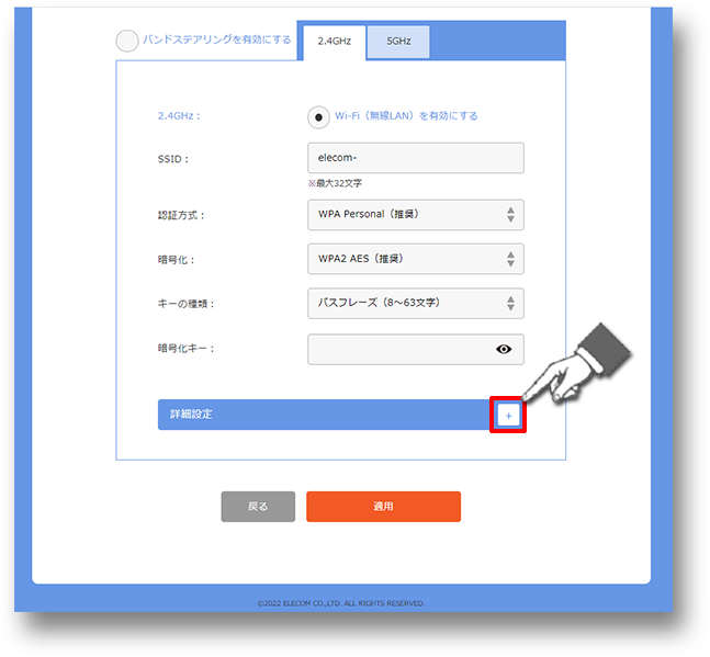 設定を変えたい電波帯域(2.4GHz/5GHz)を選択します。