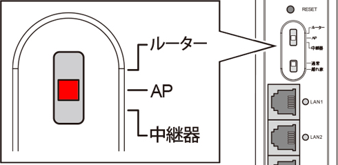 本製品の背面にある動作モードの切り替えスイッチを AP に合わせます。