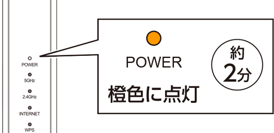 本製品の正面にあるPOWERランプが 橙色 に点灯します。
