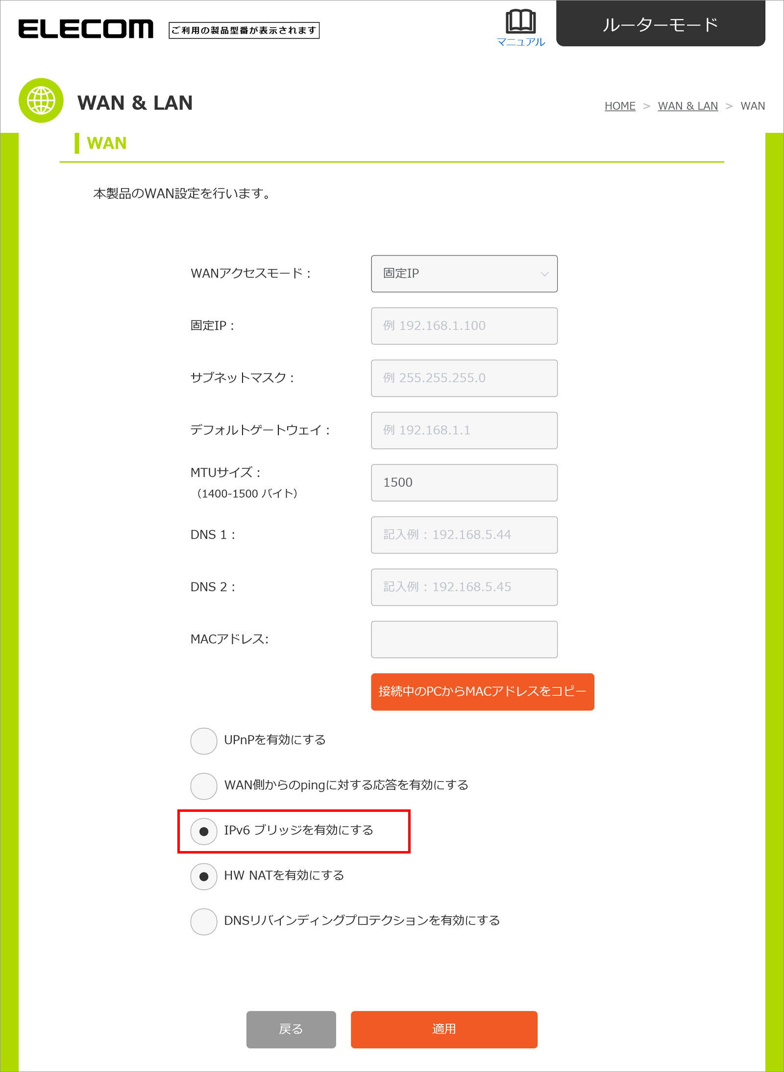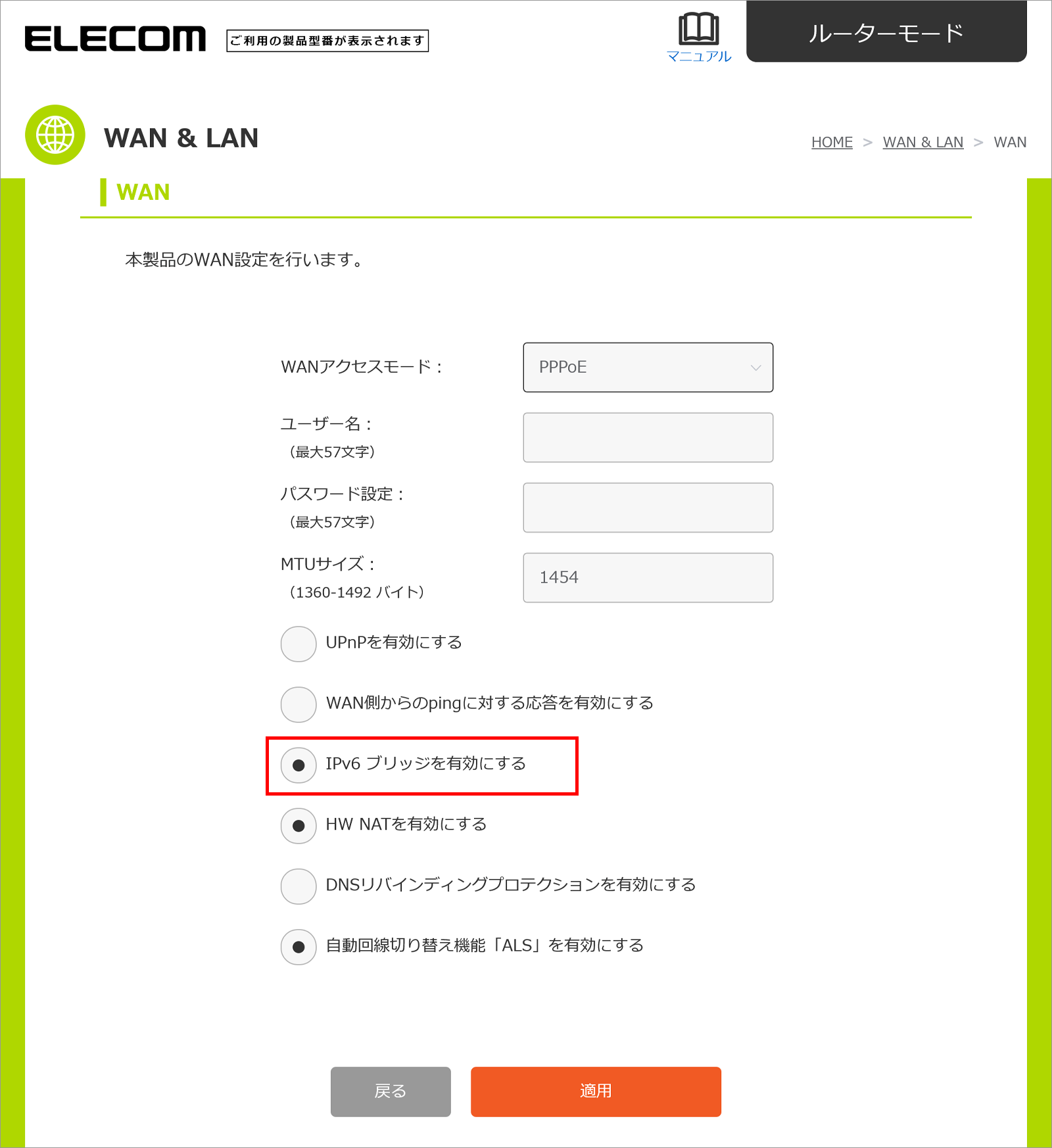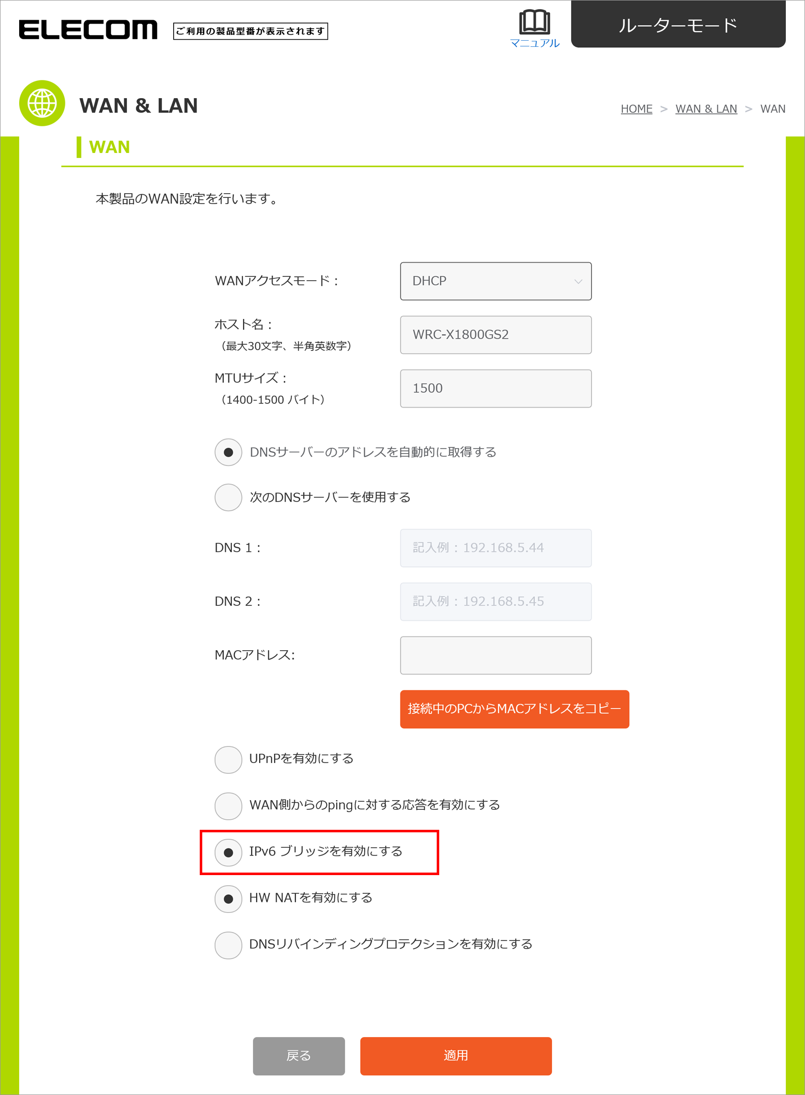 Q.WRC-X1500GS2-B/WRC-X1800GS2-B/WRC-X3000GS4-BのIPv6パススルー(ブリッジ)機能有効化手順