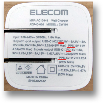 PDまたはPPSのどちらかの記載があれば、最適な充電が可能です。