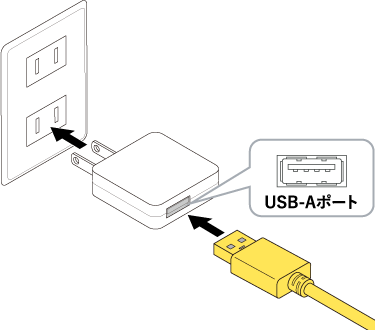 AC充電器(ACアダプター)を使用し、壁のコンセントから充電してください。