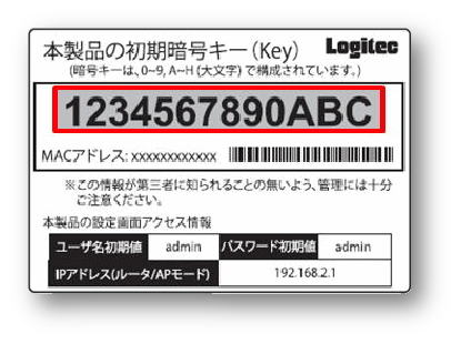 1 弊社Wi-Fiルーターに付属の「本製品の初期暗号キー(Key)」シールをご用意ください。
